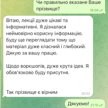 - Сертифікована спеціалістка по роботі з випадкими актуального насильства, по роботі з ПТСР, з невизначеною втратою